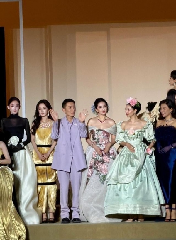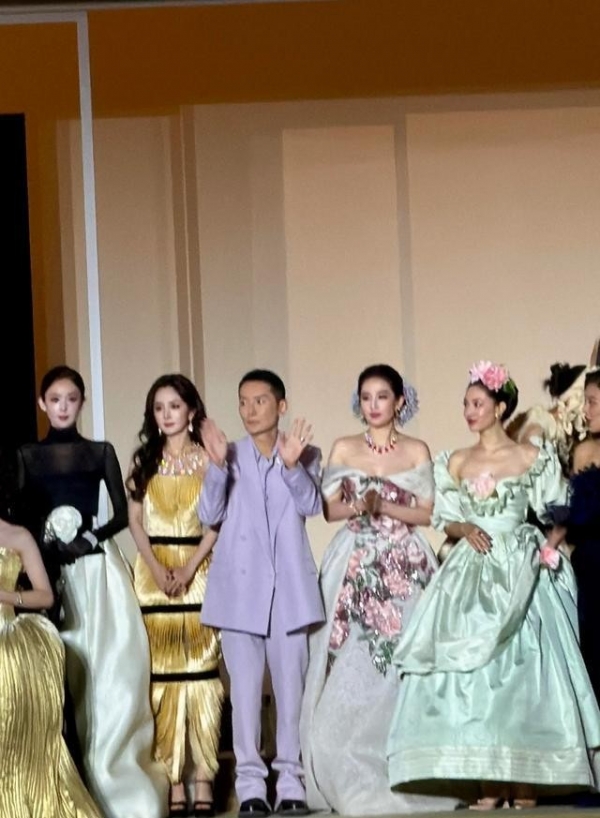最后还是主办方的负责人挤进了那道缝里,这才算把画面填满。可他一站进去,又不小心踩到了刘亦菲长长的裙摆,场面一度有些手忙脚乱。