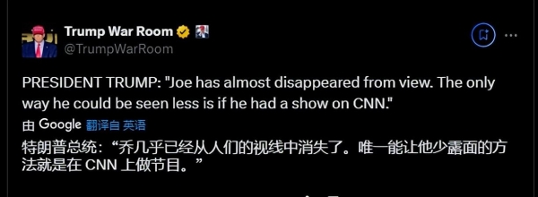 特朗普:"拜登已经不露面了。唯一能让他少露面的方法就是在 CNN 上做节目。"