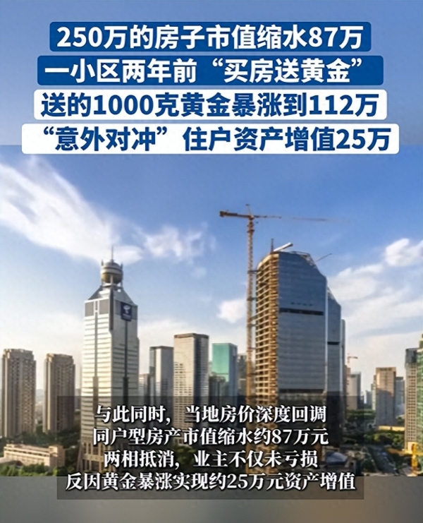 "真是没想到,当年冲着折扣买的房,现在房价是跌了,但黄金涨疯了。"一位当年购入100平方米户型的业主感慨,"这算不算瞎猫碰上死耗子?"
