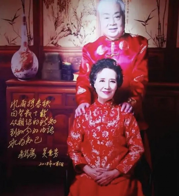 照片里他白发苍苍却紧握妻子双手,背景是家中那幅《西游记》如来画像。