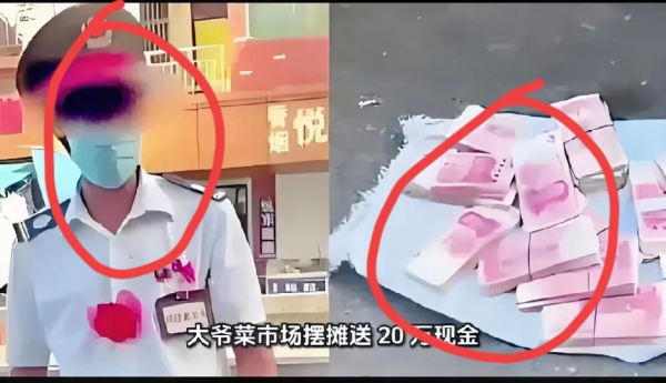 某网友在社交平台发布了一段视频,浙江诸暨一大爷,在菜市场附近摆摊,大爷称"送20万现金,有需要可以来拿",但是没有人敢拿。
