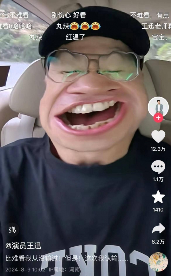 随后,王迅还专门发视频再回应:"比难看我从没输过!但是!这次我认输......"视频中,王迅戴着帽子大声喊着:"有人说我难看,我哪难看啦?我哪难看啦?!"