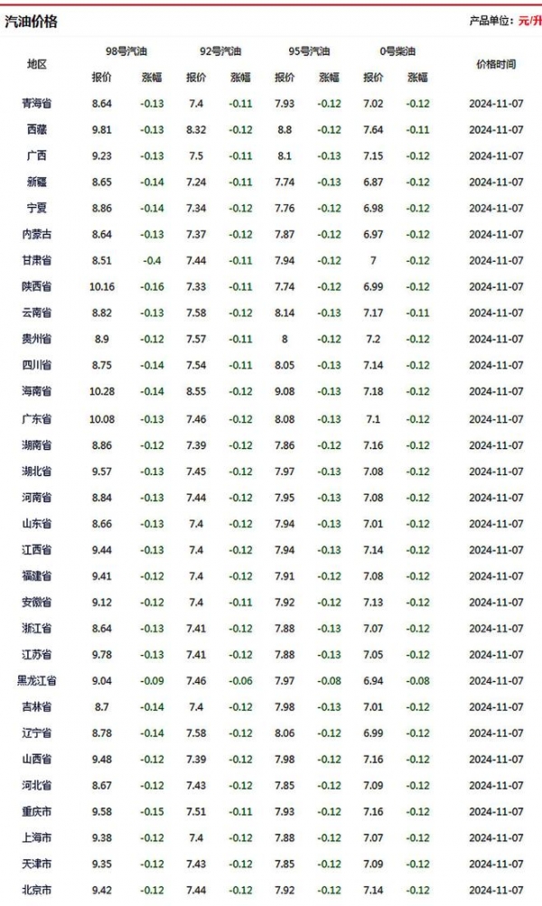 附:全国各地加油站92/95号汽油价格,仅供参考!