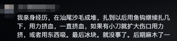 评论区有网友分享了一些被沙毛鱼刺了之后的应对方式,不过显然都是民间土方,看起来太糙了。
