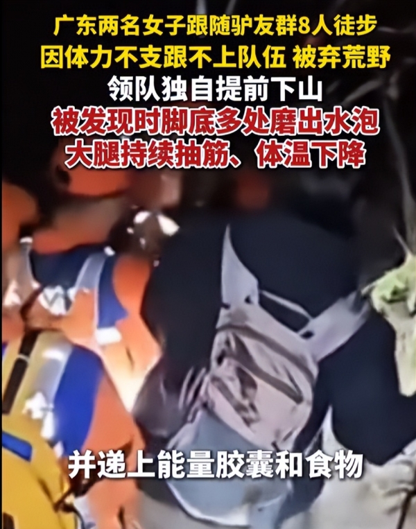 广东惠州,两位女生跟着一个8人驴友群去爬山,本来想着锻炼身体结果爬到一半体力跟不上了,可没想到"领队"一句话都没说,自己先下山走了!