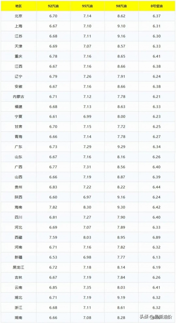 在文章的最后,今日油价最新资讯的小编就带各位车友去看看当前最新油价的报价情况。在油价下跌后,今天来到12月26日,全国各地最新的0号柴油和92、95、98号汽油价格情况(单位元/升):