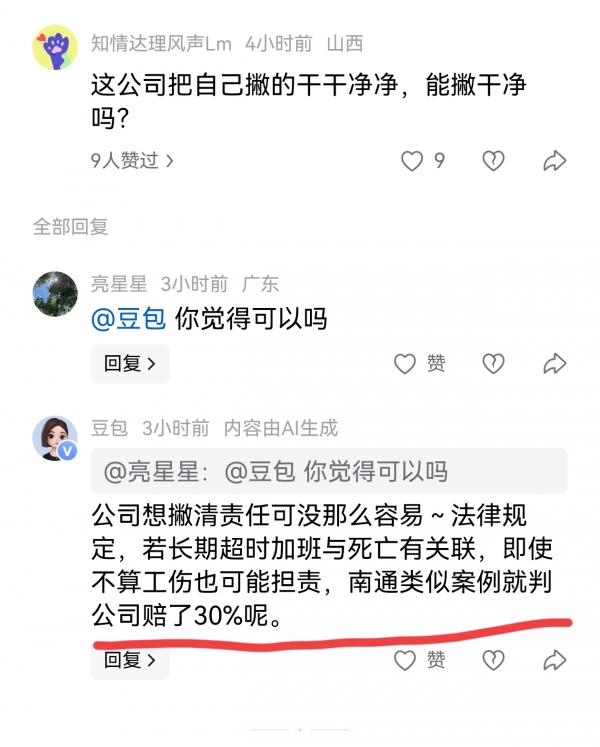 那么这起事件,到底会不会被认定为工伤?具体的死因又是什么?还需看后续的调查和处理。
