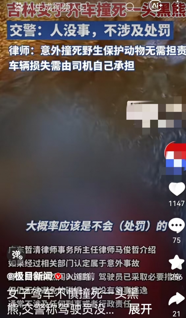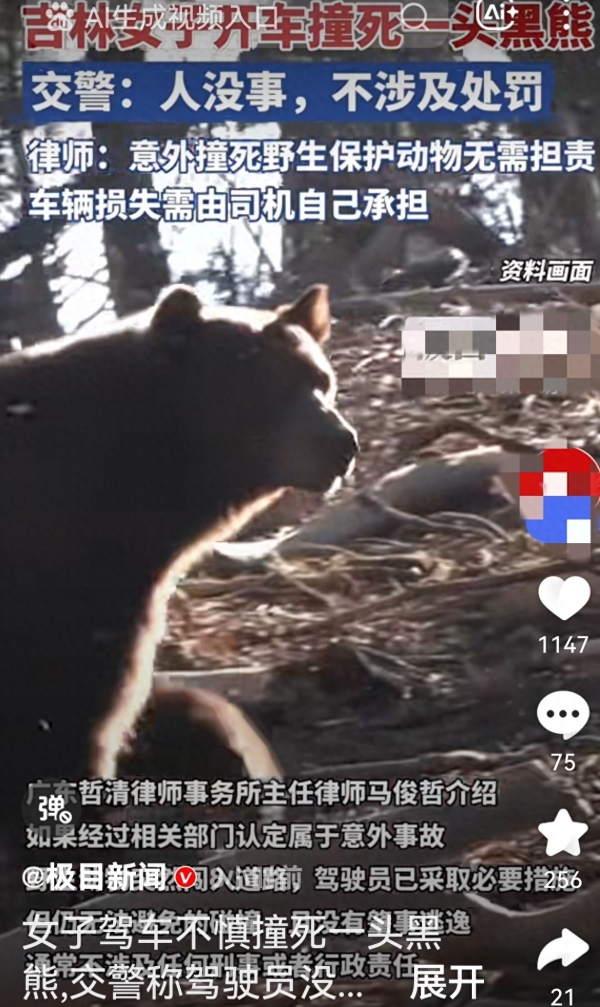律师出来说话了:司机要是没故意或过失,确实不用担责,但修车钱得自己掏,除非保险肯赔。更扎心的是,这黑熊属于国家保护动物,尸体直接交给林业局处理,司机连个"熊掌汤"都喝不上。有网友吐槽:"合着人没事,车毁了,还得自认倒霉?"