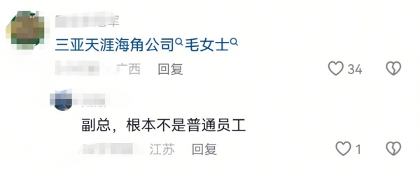 女子的身份也确实被扒了出来,是三亚天涯海角公司的毛女士,照片对此看应该确实是其本人。