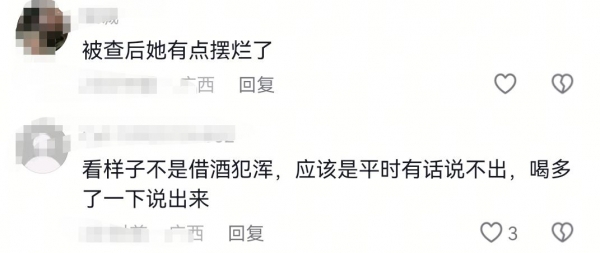 真怀疑这女子的精神状态,有网友认为她这是被查后有些摆烂了,还有网友认为她这是借着酒劲,把平时不能说的话都说了出来。