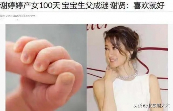 同年6月2日,谢婷婷在个人社交网站晒出一张宝宝小手的照片,并配文"You are my brightest light",公布生女喜讯,坐实了未婚生女一事。