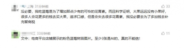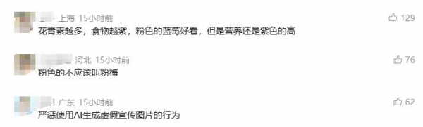 云南省农业科学院高山经济植物研究所所长和加卫解释称,粉色蓝莓的色泽是品种杂交选育的天然结果,并非染色或转基因产物。