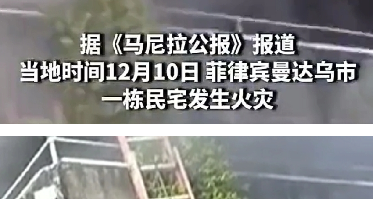 12月10日,菲律宾曼达乌市一幢居民楼发生火灾,浓烟裹挟着火焰肆意横行,一女子和她的两只宠物狗被困在三楼,急的团团转。