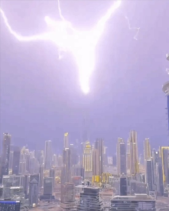 据英国《镜报》3月27日报道,迪拜遭受恶劣天气侵袭,闪电击中世界最高建筑--哈利法塔,使这座城市天际线呈现出末日般景象。