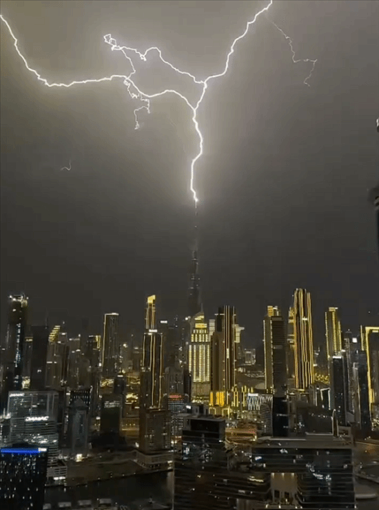 报道称,这段令人震撼的视频是从3月26日晚间开始流传。视频片段显示,闪电似乎被安全地引导通过了这座828米高建筑的防护系统。迪拜媒体办公室发布安全警告,敦促居民在当前动荡天气条件下保持警惕。