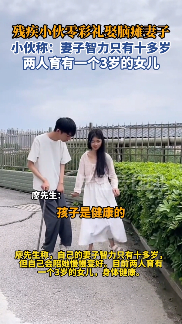 廖先生说,虽然妻子是脑瘫,智力比正常人低,但是他觉得,别的女人有的,妻子也要有,他准备按照当地习俗,正常准备彩礼。