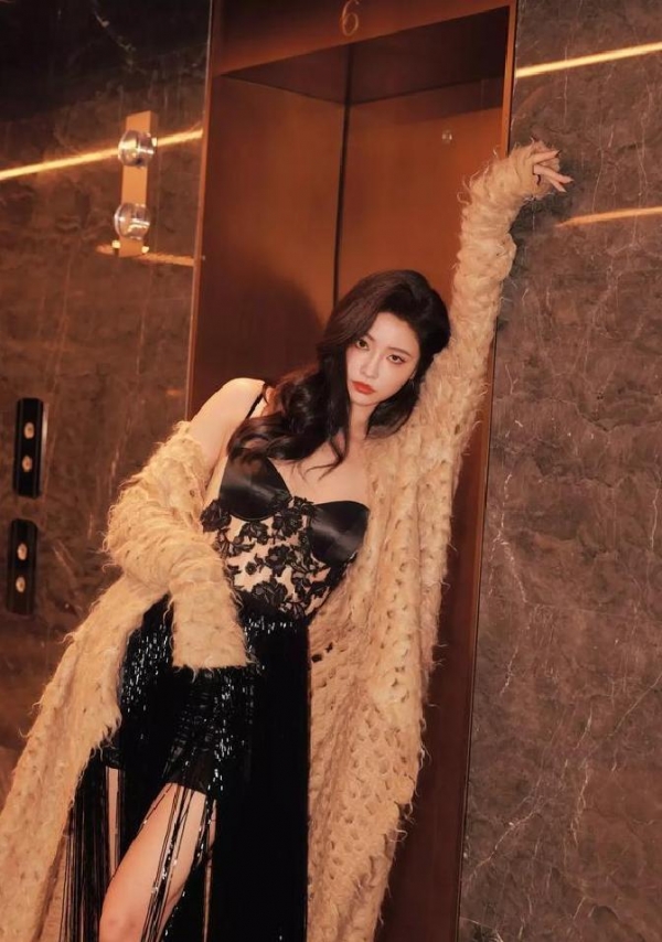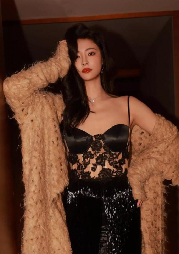 她这次选的这件蕾丝吊带其实也蛮用心。剪裁很合身, 裁剪利落,肩带细细的,勾勒骨架线条。下摆不长,腿部线条拉得挺流畅,比例特别舒服。旁边几乎没有配饰,连常见的包包都省了,干净利落,照片看着也很通透。很多人说简单其实才是难点,穿得太复杂反而失焦。她这组照片出来,气质和身材都到位,反而比舞台妆效果更抓眼。