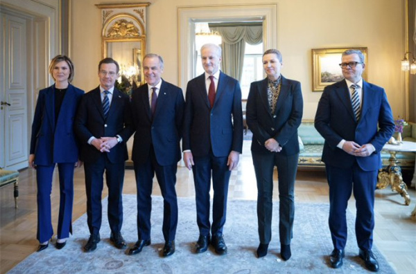 卡尼(左三)上周与北欧五国领导人在奥斯陆会晤 卡尼X账号