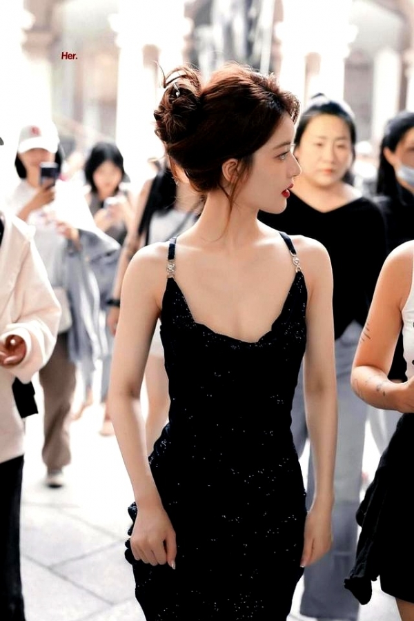 这种颜色既能显瘦又能突出身材曲线,赵露思选择的这款吊带裙正是利用了黑色的这一特性。