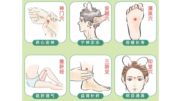 也可以多按压有助于睡眠的穴位,比如神门穴、安眠穴、涌泉穴、推肝经、三阴交以及印堂穴。通过按压穴位帮助睡眠,缓解失眠多梦以及心神不宁等问题。