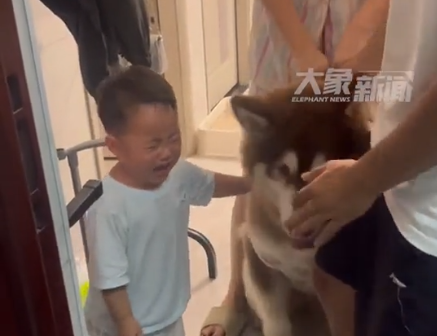 7月24日,浙江金华,小朋友去旅游,看到狗狗被寄养,以为狗狗被抛弃嚎啕大哭,爸妈最后决定带狗狗一起去旅游。