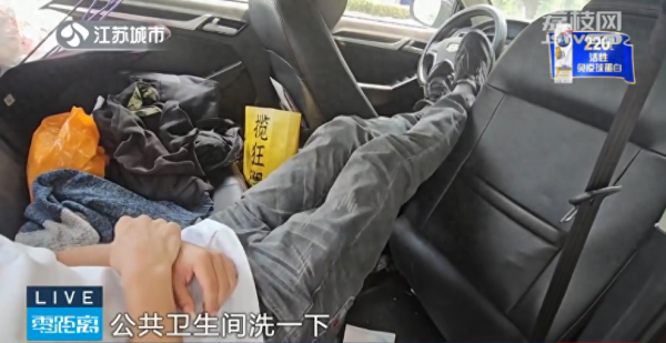 在南京栖霞区摄山新城附近的路边,快递小哥小杰过着以车为家的"蜗居"生活,洗漱得去公共卫生间,太热就只能找阴凉处,晚上就在开阔的空地上停车休息……这样的生活已经有大半年时间。