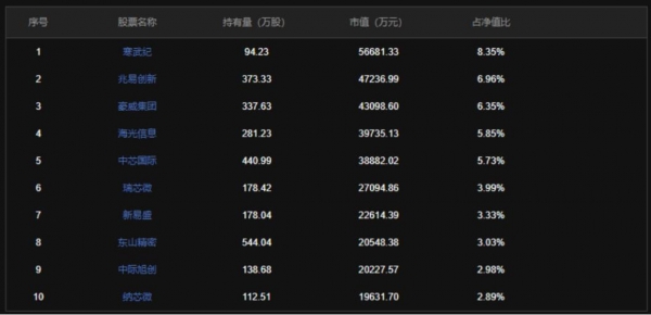 2022年2季度、3季度重仓拓荆科技、北方华创等半导体产业链龙头;2023年开始逐步重仓配置金山办公等AI应用方向的各个细分龙头;到了2023年二季度,中际旭创开始成为第一大持仓,然后在接下来几年里多次位列富国新兴产业的重仓股;再到2024年第二季度,寒武纪又成为重仓品种,根据2025年一季报及二季报的披露,均位列第一大重仓!
