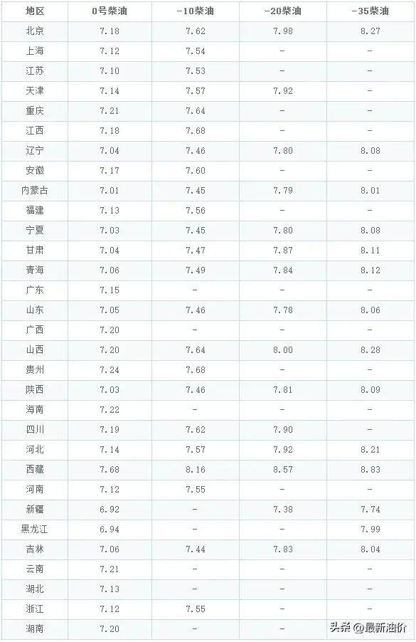 10月15日全国各省市柴油价格表: