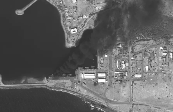卫星图像显示,港内可见三艘同级舰,其中一艘严重受损,舰身被浓烟遮蔽。此前一天的图像记录显示,受损舰艇泊位停靠的正是一艘"阿尔万德"级护卫舰。
