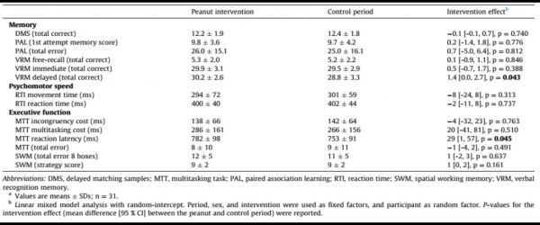 老年人在花生干预和控制期后的认知表现(论文截图)