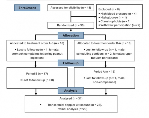 参与者被分为两组,先后进行两个为期16周的阶段:一个阶段每天吃60克无盐带皮烤花生(约一小把),另一个阶段则完全不吃花生。两个阶段之间设有8周的"清洗期"。