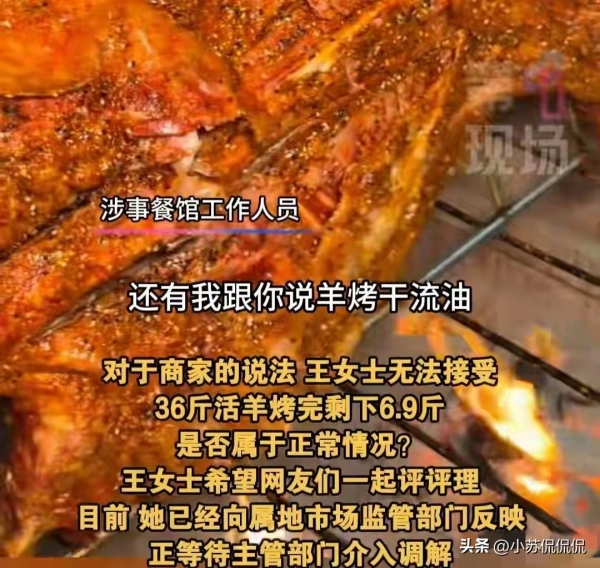 事情发生之后,这位女士也将相关情况反馈给了相关监管部门,希望能够通过正规途径,弄清楚烤全羊从活羊到成品的正常损耗范围,也想确认店家在经营过程中是否存在计量不实,消费误导的情况。