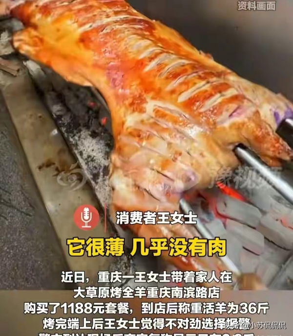 可当服务员把烤好的烤全羊上桌时,她一眼就觉得羊的分量明显不对,眼前这盘烤全羊不管是体积还是肉眼看上去分量都和36斤的活羊相差太大,整只羊烤完之后显得是格外瘦小,肉量少的离谱,完全不像是正常烤全羊该有的样子,于是便当场提出复称,面对这正常的要求,商家却一口回绝,还狡辩称烤完只剩下4成是正常情况。