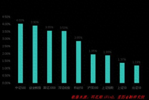 周内A股集体收涨,9大指数集体上行,市场上赚钱效应不错。从市场风格上看,大小盘相对分化,中盘股最为突出,中证500大涨4.03%,小盘股也表现不错,国证2000上涨3.55%,均超过沪深300以及市值更大的上证50。不过,北证50仅小幅上涨1.19%,微盘股相对承压。成长表现好于价值,创业板指和科创50分别上涨3.90%和2.85%,均要优于价值风格占主流的上证50和沪深300。