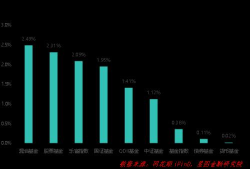 周内基金收益率中枢表现分化,商品型表现最佳,周收益率中枢达到2.69%,主要是黄金和白银价格不断创出新高。QDII型、股票型、混合型基金周收益率中枢较上周分别上行3.56pct、2.53pct、2.16pct,主要是日本央行加息利空落地后,全球资本市场普遍上涨。从年收益率中枢来看,绝大部分基金类型收益率中枢都在上行,其中商品型、股票型、QDII型上升幅度最大,分别为4.07pct、3.23pct、3.19pct。