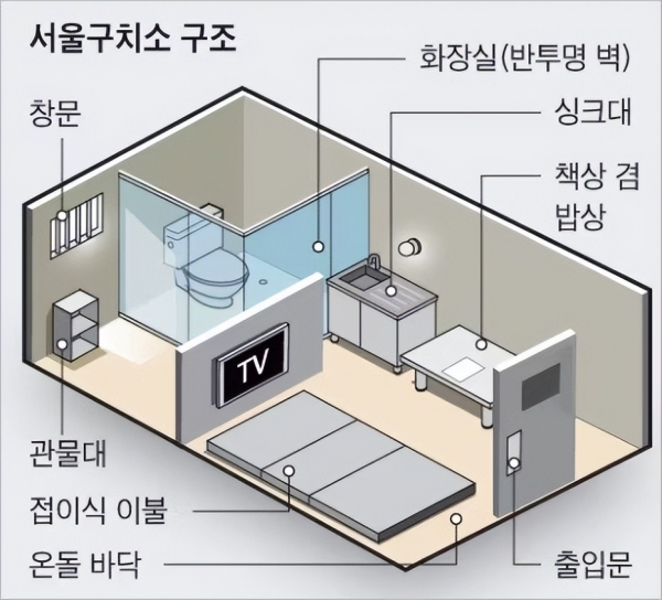 尹锡悦被关在首尔拘留所,分到的是一间10平方米左右的单间。