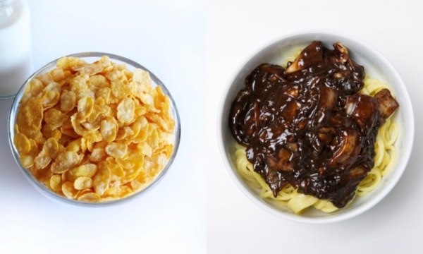 早餐是奶酪面包、蒸土豆、坚果和牛奶。午餐大酱汤配鸡蛋羹,再来点黄瓜拌菜和泡菜。晚餐豆芽汤加辣酱烤肉,配上生菜、包饭酱和泡菜。