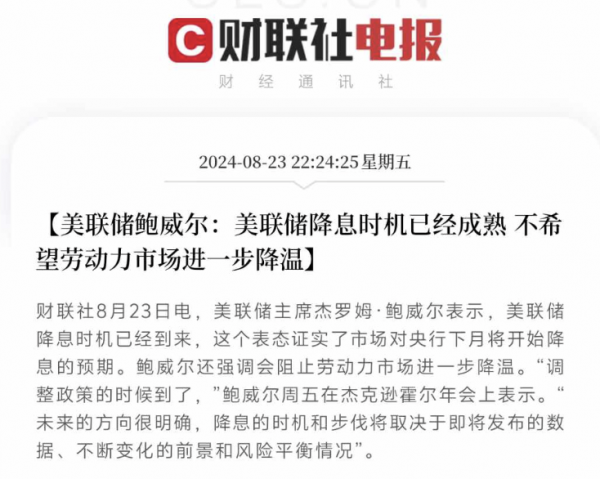 昨晚,当美联储主席鲍威尔在杰克逊霍尔全球央行年会上发表重磅言论时,释放出了迄今为止最强烈、最明确的降息信号。那么,这次鲍威尔究竟说了什么?对市场有何影响?