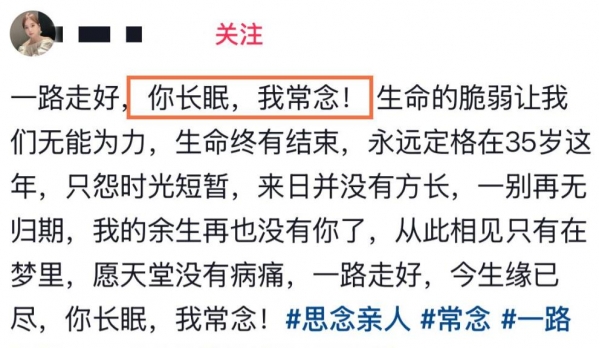 张小青走的时候才35岁,上面有老人,下面有孩子,她老公发的那句话很短,但看着很重,身体出了信号,别等,去查,这是她用自己的经历留下来的东西。