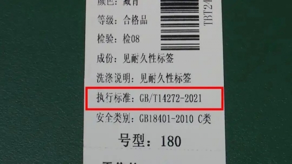 认准吊牌或水洗标上是否标注 GB/T 14272-2021,这是新国标的"身份证"。