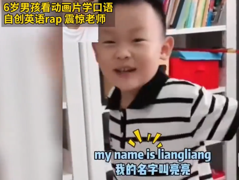 视频中,一个6岁小男孩正在用英语rap震惊网友,小男孩名叫亮亮,今年6岁了,据悉亮亮是看动画片自学的英语口语。老师:看动画学英语很有效果,网友:我现在看还来得及吗?