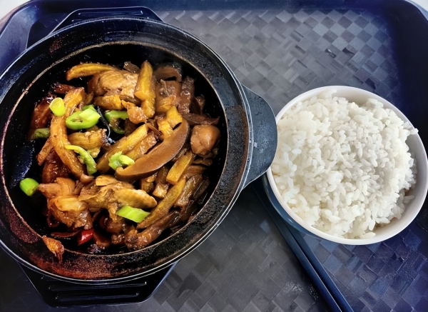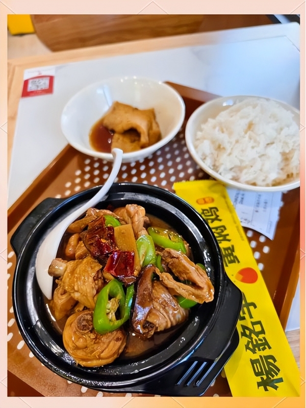 这种菜品以鸡块、土豆和青椒为主料,通过焖制工艺形成浓郁口感,配上米饭成为便餐选择。