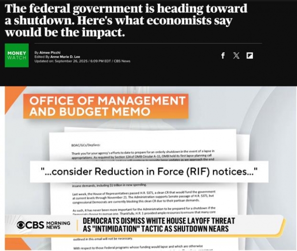 但就在这一关键时刻,白宫又横生枝节。白宫管理和预算办公室9月25日下令各机构为裁员(Reduction in Force,RIF)做准备,而不仅是以往惯常的非必要岗位人员无薪休假。"RIF"是美国政府人事和劳动管理领域的术语,通常指因经费、编制、机构调整等原因进行的裁员、精简人员、撤销岗位。因此,此举既是应急方案,也被视为向国会施压。如果继续僵持,后果可能不只是短暂停工,还包括机构和雇员结构的永久变化。
