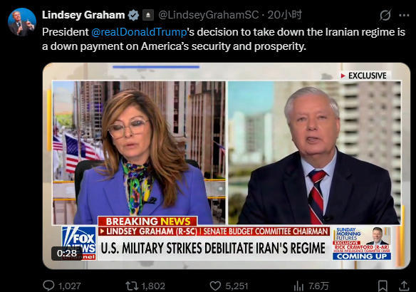《纽约时报》等美媒提到,格雷厄姆是华盛顿最强硬的鹰派人物之一,长期鼓吹对伊朗采取军事行动。