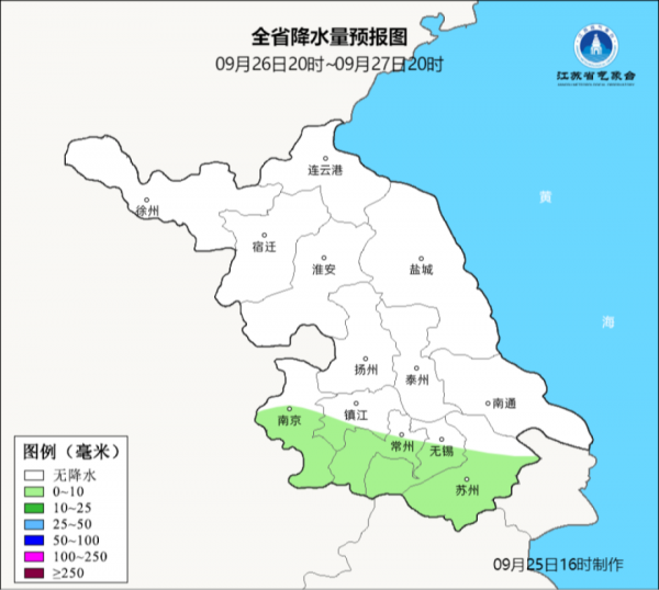 26日-27日苏南地区有分散性阵雨