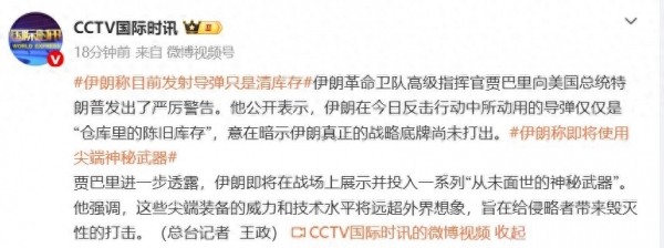 据CCTV国际时讯,伊朗革命卫队高级指挥官贾巴里向美国总统特朗普发出了严厉警告。他公开表示,伊朗在今日反击行动中所动用的导弹仅仅是"仓库里的陈旧库存",意在暗示伊朗真正的战略底牌尚未打出。