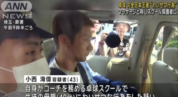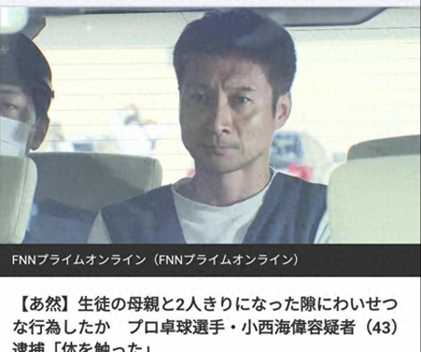 这起事情发生在日本埼玉县的一家知名乒乓球队,主角是这位名叫小西海伟的教练。他以指导训练为由,特意邀请了一个学生的妈妈,观看他们的比赛。