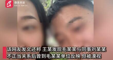 据百姓关注8月6日报道,8月5日,浙江杭州有位网友发文说,自己的儿子王某发现自己新婚护士妻子毛某某和她的同事刘某某有不正当男女关系,就到妻子单位投诉。