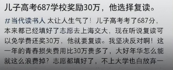 今年高考复读人数就超过了400万,尤其高考大省报名人数都突破了新高。尽管很多省份都出台了限制措施,已经被高校录取的考生不得随意退学,以此来阻止学生因为冲动而选择复读。