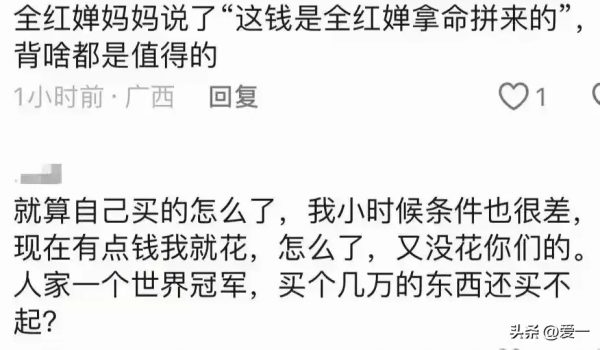 但当全红婵购买后,却引发了如此大的争议。这背后反映出的,或许是人们对她出身的刻板印象。全红婵来自农民家庭,在一些人的潜意识里,她就应该保持朴实、节俭的形象。